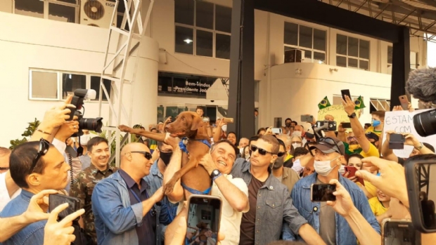 O presidente Jair Bolsonaro (sem partido) chegou a Sinop (500km de Cuiabá) na manhã desta sexta-feira (18) e desceu do avião presidencial sem usar máscaras.