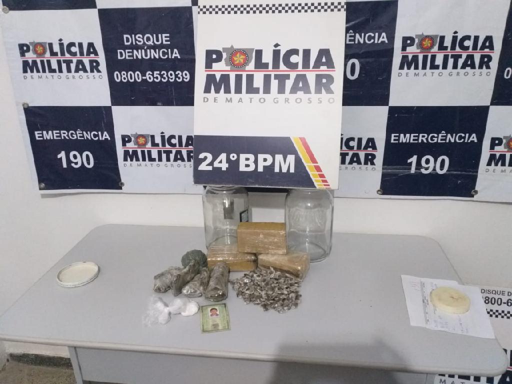 No bairro Osmar Cabral, em Cuiabá, policiais do 24º Batalhão da Polícia Militar apreenderam na noite de domingo (11.10), em uma residência, um adolescente e