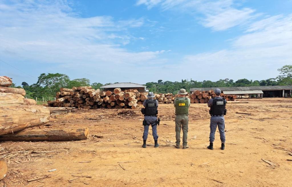 Dois empreendimentos foram embargados durante fase da Operação Amazônia realizada no município Da Redação Cerca de 1,8 mil metros cúbicos de madeira ilegal foram apreendidas