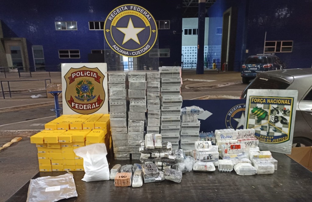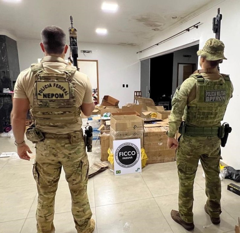 Foz do Iguaçu/PR. Na noite de sábado (2/11), a Polícia Federal, a Receita Federal e a Força Nacional apreenderam três caixas com celulares e anabolizantes, em