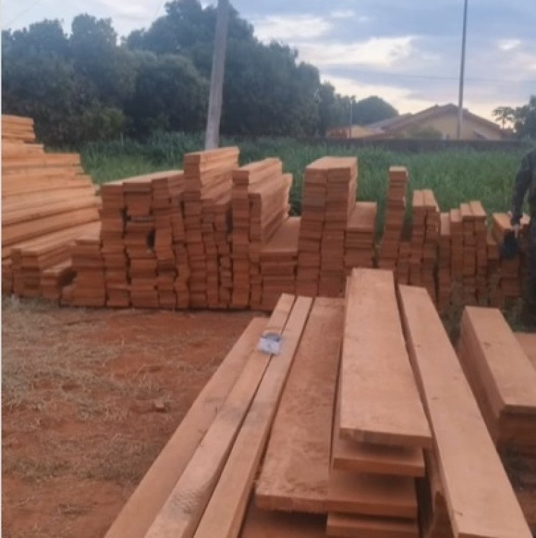 Policiais militares da 3ª Companhia Independente de Proteção Ambiental apreenderam, nesta quinta-feira (02.01), uma carga de 25,820m³ de madeira irregular e prenderam um homem por