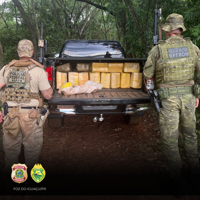 Foz do Iguaçu/PR. Policiais federais e militares, em ação conjunta de repressão ao tráfico internacional de drogas, localizaram um veículo sendo carregado com dezenas de fardos