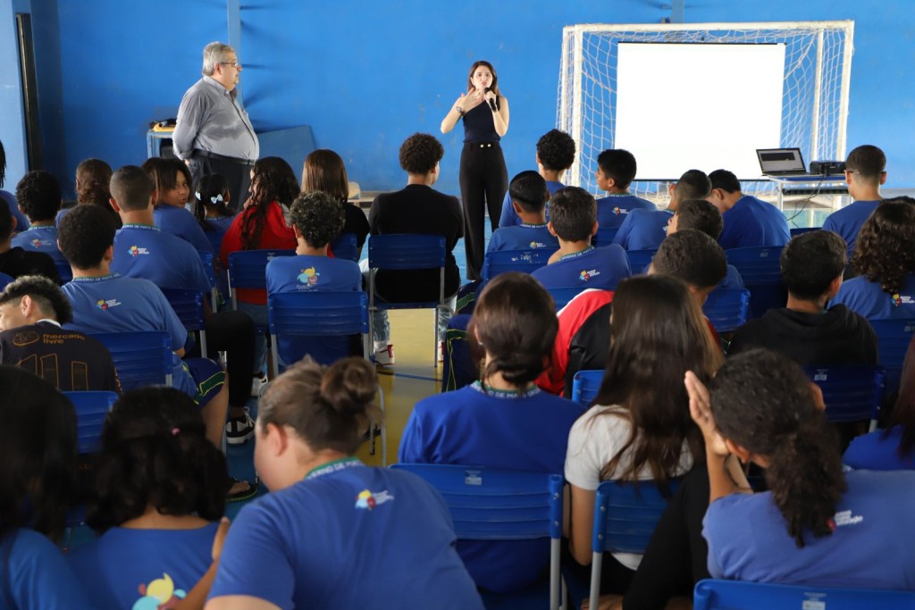 Cerca de 350 alunos da Escola Estadual de Desenvolvimento Integral da Educação Básica (EEDIEB) Alcebíades Calháo participaram, na manhã desta terça-feira (15), da palestra sobre