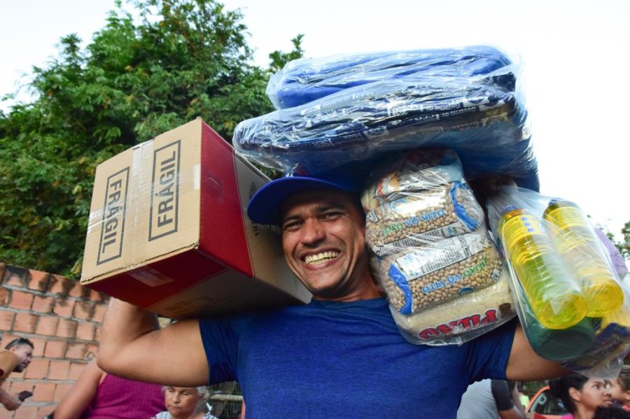 Famílias em situação de vulnerabilidade de Sinop receberam, nesta sexta-feira (16.5), alimentos, cobertores, brinquedos e itens de higiene por meio do Programa SER Família Solidário.