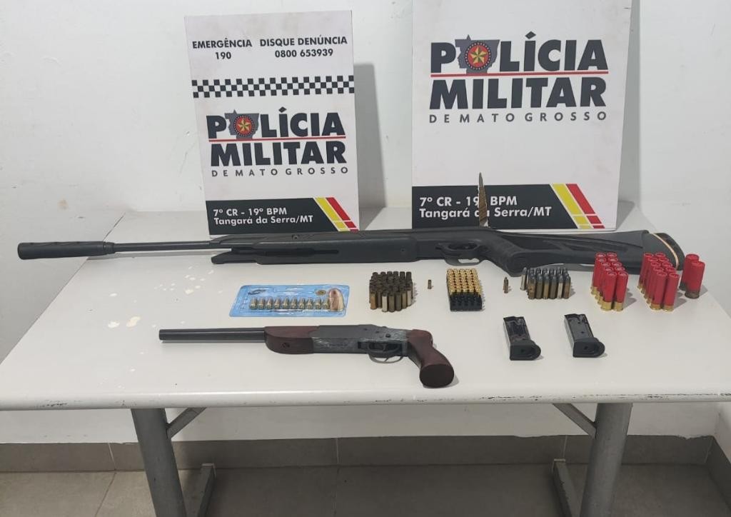 Equipes do 19º Batalhão da Polícia Militar apreenderam, nesta terça-feira (20.5), duas espingardas, 149 munições de calibres diversos e prenderam um homem, de 54 anos,