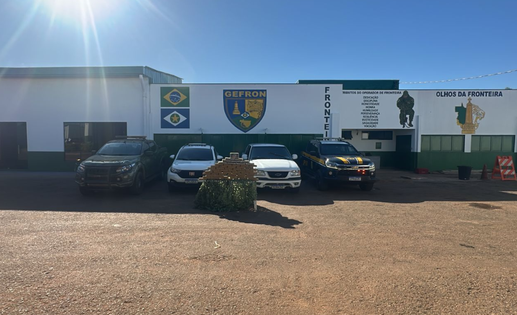 Policiais do Grupo Especial de Fronteira (Gefron) e Polícia Rodoviária Federal (PRF) apreenderam 61 tabletes de pasta base de cocaína e skunk em uma caminhonete