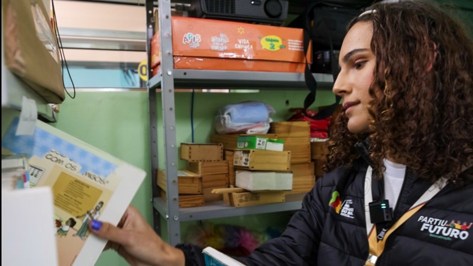 Matheus de Moraes, 15 anos, mostra com orgulho o crachá que o identifica como jovem aprendiz. O adolescente, residente no município de Rio Grande, no