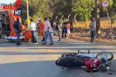Um motociclista de 17 anos ficou gravemente ferido ao colidir com um Volkswagen Polo na Rua Claudino Frâncio, na manhã desta segunda -feira (28) em