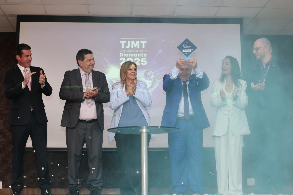 Em ato simbólico, magistrados e servidores celebraram o Selo Diamante conquistado no Prêmio CNJ de Qualidade 2025 conquistado pelo Tribunal de Justiça de Mato Grosso