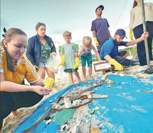 Iniciativa leva crianças de 5 e 6 anos à praia de Jurerê para aprender sobre a preservação da natureza e a coleta de resíduos para reciclagem