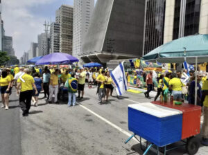 Alguns portavam bandeiras de Israel. Na última semana, o governo de Benjamin Netanyahu foi criticado por Lula, que chamou de genocídio a morte de palestinos em Gaza e comparou as ações do Exército israelense ao extermínio de judeus por nazistas no Holocausto. Em resposta, Israel declarou Lula “persona non grata”, o que significa que sua presença não é bem-vinda.