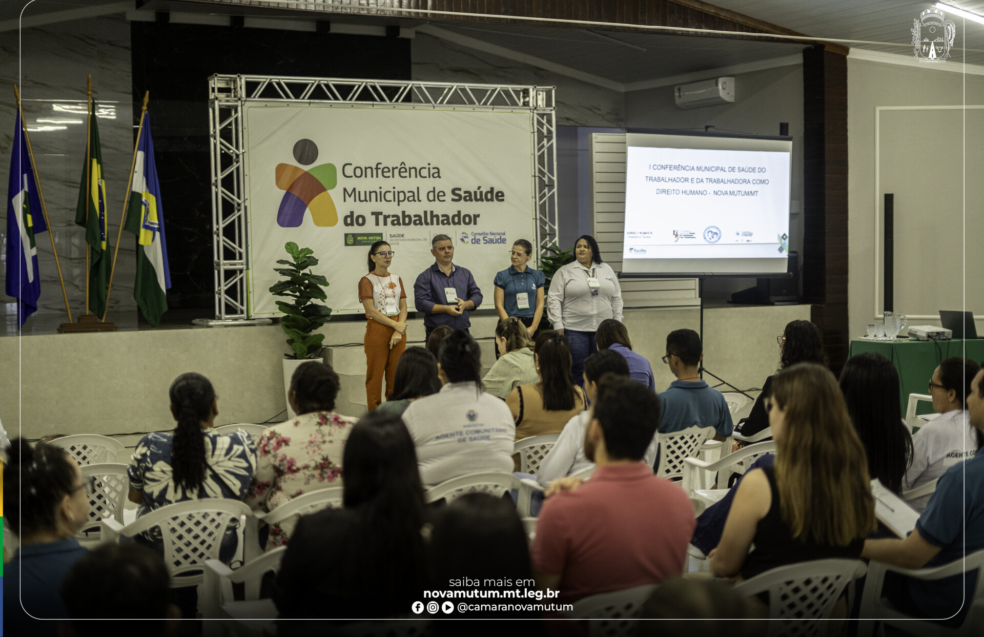 A Câmara Municipal de Nova Mutum participou da 1ª Conferência Municipal de Saúde do Trabalhador, com uma comitiva liderada pelo presidente, vereador Lucas Badan Faria (UNIÃO BRASIL), e composta pelos vereadores Altair Albuquerque (PP), Jaiane Santos (PP), Bia Kohler (UNIÃO BRASIL) e Lurdes Costa Marques. Durante o evento, Lucas Badan destacou a importância de melhorar as condições de trabalho, beneficiando tanto os trabalhadores quanto as empresas.