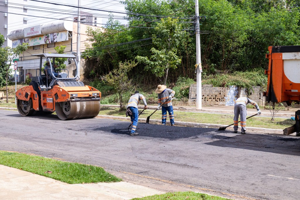 Na primeira etapa, as equipes executam o tapa-buraco, corrigindo os trechos com desníveis e imperfeições. Em seguida, é realizada a fresagem, com a retirada do asfalto antigo e o preparo da base para a aplicação do novo pavimento.