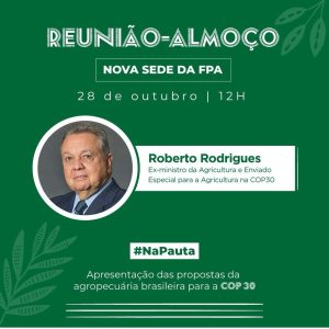 A Frente Parlamentar da Agropecuária (FPA), também conhecida como “bancada ruralista”, realizará na próxima terça-feira, 28 de outubro, a apresentação das contribuições do setor agropecuário brasileiro para a COP-30. O documento será apresentado pelo ex-ministro da Agricultura do primeiro governo do presidente Luiz Inácio Lula da Silva (PT), Roberto Rodrigues, entre 2003 e 2006, atual enviado especial para agricultura no evento climático das Nações Unidas, e contará com a presença do embaixador Maurício Lyrio, secretário de Clima, Energia e Meio Ambiente do Itamaraty. O encontro servirá para marcar a “posição estratégica” do agronegócio brasileiro nas negociações climáticas internacionais, buscando alinhar a produção rural às metas ambientais. As propostas deverão integrar a posição oficial do Brasil durante as discussões, refletindo a importância do setor no cumprimento dos compromissos climáticos nacionais e internacionais.