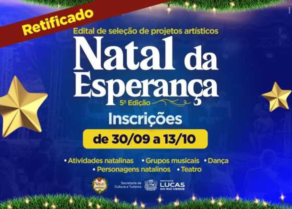 A Prefeitura de Lucas do Rio Verde, por meio da Secretaria Municipal de Cultura e Turismo, informa que estão abertas, as inscrições para o Edital