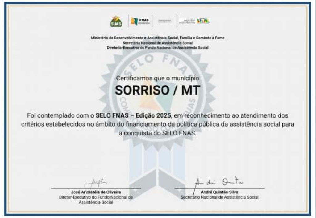 Selo FNAS 2025 levou em consideração o desempenho em 2024 O reconhecimento que a Prefeitura usou, com responsabilidade e eficiência, todos os recursos destinados à
