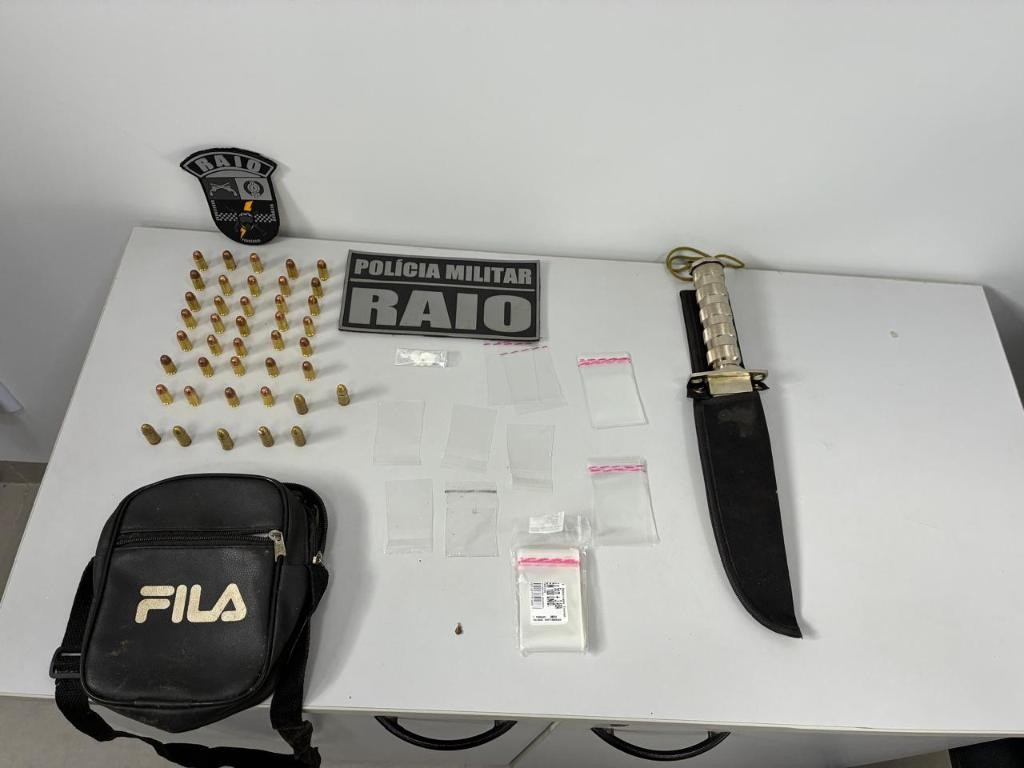 Em relato à PM, o homem ainda informou possuir munições de arma de fogo em sua casa. Em seguida, os policiais realizaram as buscas e encontraram 41 munições de calibres 9.mm e 380.mm, além de diversas embalagens para armazenamento de entorpecentes. Ele foi detido e encaminhado à delegacia.