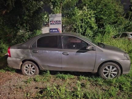 A PM foi acionada após uma testemunha reconhecer um Toyota Etios, roubado no dia 20, estacionado em frente a um bar. Ao tentar abordar o suspeito, ele fugiu armado.