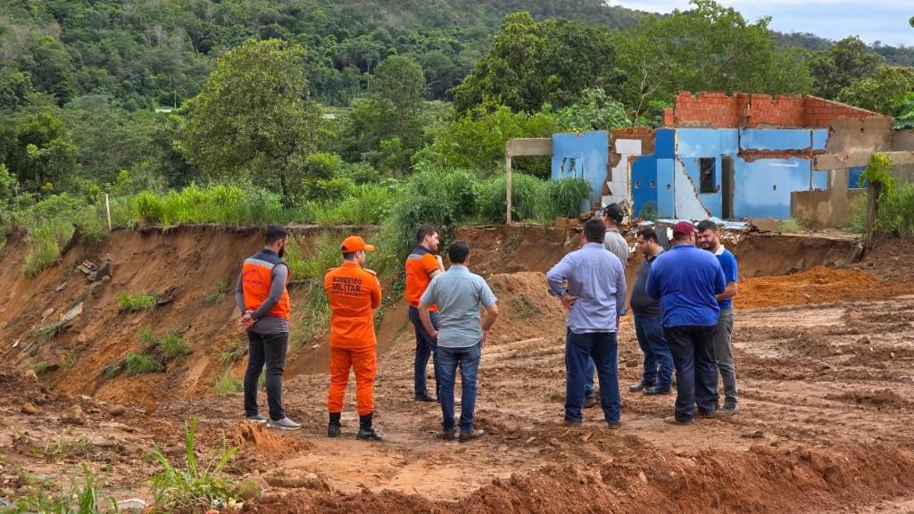 Defesa Civil estadual faz vistoria técnica após erosão e risco de deslizamento em Nova Poxoréu