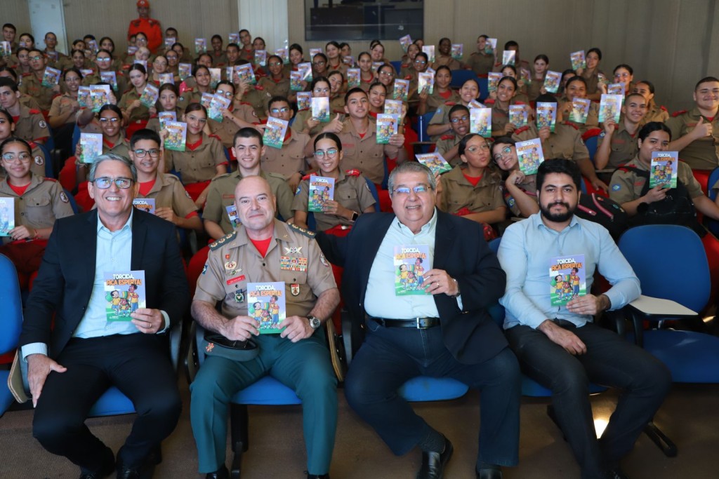 Eliza França, aluna do 1º ano do ensino médio da Escola Estadual Militar Dom Pedro II (Presidente Médici), só tinha assistido ao show de humor da dupla Nico e Lau pela internet. Na manhã desta quinta-feira (21), ela teve a oportunidade de vê-los ao vivo, rir, dançar, se divertir e, acima de tudo, aprender mais sobre cultura de paz, respeito e cidadania nos ambientes esportivos. Eliza integrou o grupo de estudantes com as melhores notas da escola, selecionados para participar do evento “Cidadania em Campo: direitos, deveres e convivência no esporte”, promovido pelo Ministério Público do Estado de Mato Grosso (MPMT), em Cuiabá.A ação marcou o lançamento da cartilha “Torcida, fica esperta!”, desenvolvida pelo MPMT em colaboração com Nico & Lau Produções e Ric Milk Estúdio. “Achei muito divertido, amei demais tê-los aqui. Foi uma experiência inesquecível. O que mais me chamou a atenção foram as consequências dos crimes no estádio. Muitas vezes as pessoas não pensam, mas precisam saber que existem regras”, contou Eliza. A amiga dela, Júlia Ribeiro, também do 1º ano, aprovou a iniciativa: “Achei incrível como eles trouxeram informações importantes em uma linguagem informal pra gente”, afirmou.O estudante Weiny de Souza, também do 1º ano, agradeceu ao MPMT pela oportunidade. “Foi um conteúdo muito importante, que precisa ser falado com a sociedade. Gratidão ao Ministério Público por nos fornecer esses conhecimentos. E o show com Nico e Lau foi maravilhoso”, disse. Frequentador da Arena Pantanal, ele acrescentou: “Antes havia algumas regras com as quais eu não concordava, mas agora entendo o motivo de existirem”.Promovido pelo Centro de Estudos e Aperfeiçoamento Funcional (Ceaf), Escola Institucional do MPMT, em parceria com a 25ª Promotoria de Justiça Criminal, o evento teve como objetivo esclarecer aspectos legais do Estatuto do Torcedor e reforçar o papel do cidadão na construção de um esporte mais justo e democrático. A programação incluiu um café da manhã especial, a palestra “O Esporte e a Educação como Instrumento de Inclusão e Cidadania”, apresentação da cartilha educativa e show artístico com Nico e Lau.Esporte x educação – O procurador de Justiça Paulo Roberto Jorge do Prado, titular da Procuradoria Especializada na Defesa da Criança e do Adolescente, iniciou explicando que o Ministério Público é a instituição responsável por defender os direitos dos cidadãos, atuando na proteção do meio ambiente, da infância e juventude, da pessoa idosa, além de promover a responsabilização criminal de quem infringe a lei. Durante a palestra, o procurador apresentou os conceitos de inclusão social e cidadania e destacou que “o esporte e a educação contribuem diretamente para a formação de valores, para a construção da identidade e para o fortalecimento do senso de pertencimento, especialmente em comunidades marcadas por desigualdades sociais”.Paulo Prado destacou o papel essencial da educação e do esporte na formação de cidadãos. “Quando caminham juntos, esporte e educação potencializam seus efeitos sociais. Juntos, promovem inclusão, cidadania e assumem um papel estratégico na transformação de realidades. Investir nessas áreas é investir no futuro, pois significa criar condições para que os indivíduos não apenas exerçam seus direitos, mas também assumam responsabilidades sociais, fortalecendo o tecido democrático da coletividade”, afirmou. Ele reforçou ainda que ambos são aliados no combate às desigualdades e na construção de uma sociedade mais justa e pacífica.Cartilha – Antes de apresentar a cartilha aos estudantes, o promotor de Justiça André Luís de Almeida, da 25ª Promotoria Criminal de Cuiabá, compartilhou uma lembrança pessoal com os estudantes. Ele revelou que, em 1991, atuou como professor interino de Química na antiga Escola Presidente Médici, incentivando os alunos a acreditarem em seu potencial. “É possível para cada um de nós, desde que haja esforço, estudo e empenho”, disse.Ele ainda contou que o projeto da cartilha teve início em julho de 2024 e que o intuito da publicação é orientar o público sobre comportamentos adequados nos ambientes esportivos, utilizando uma linguagem simples e lúdica. Segundo o promotor, a Lei Geral do Esporte (Lei nº 14.597/2023) funciona como um verdadeiro “manual de instruções” para garantir a segurança e o bom funcionamento dos eventos esportivos.Entre os direitos estão venda antecipada de ingressos, lugar marcado, segurança, higiene, qualidade dos alimentos e acessibilidade. Em casos de descumprimento, o promotor orienta que os cidadãos procurem o Juizado Especial do Torcedor (JET). Com relação aos deveres, estão proibidos comportamentos como portar cartazes ou cantar músicas ofensivas, incitar ou praticar violência, levar objetos que possam ser usados como armas, invadir o campo, lançar objetos no gramado e estar embriagado ou sob efeito de drogas.André Luís de Almeida também abordou os crimes que podem ocorrer em ambientes esportivos, como o racismo e a prática de cambismo, explicando as penalidades previstas em lei. “O sucesso do espetáculo depende de você. A polícia, os bombeiros, o Ministério Público e o Judiciário estão presentes para garantir a paz. Mas o principal agente da paz é você, torcedor e torcedora! Com respeito e cordialidade, a festa está garantida para todos, independentemente do resultado do jogo. Leiam a cartilha”, finalizou.Aproximação – Conforme o coronel BM Caillava, diretor da Escola Estadual Militar Dom Pedro II, a visita do Ministério Público à unidade representa o fortalecimento dos laços entre a comunidade escolar e o poder público. “É uma grande satisfação receber o Ministério Público em nossa escola. É fundamental estreitarmos essa distância que ainda existe entre o poder público e a comunidade escolar, pa