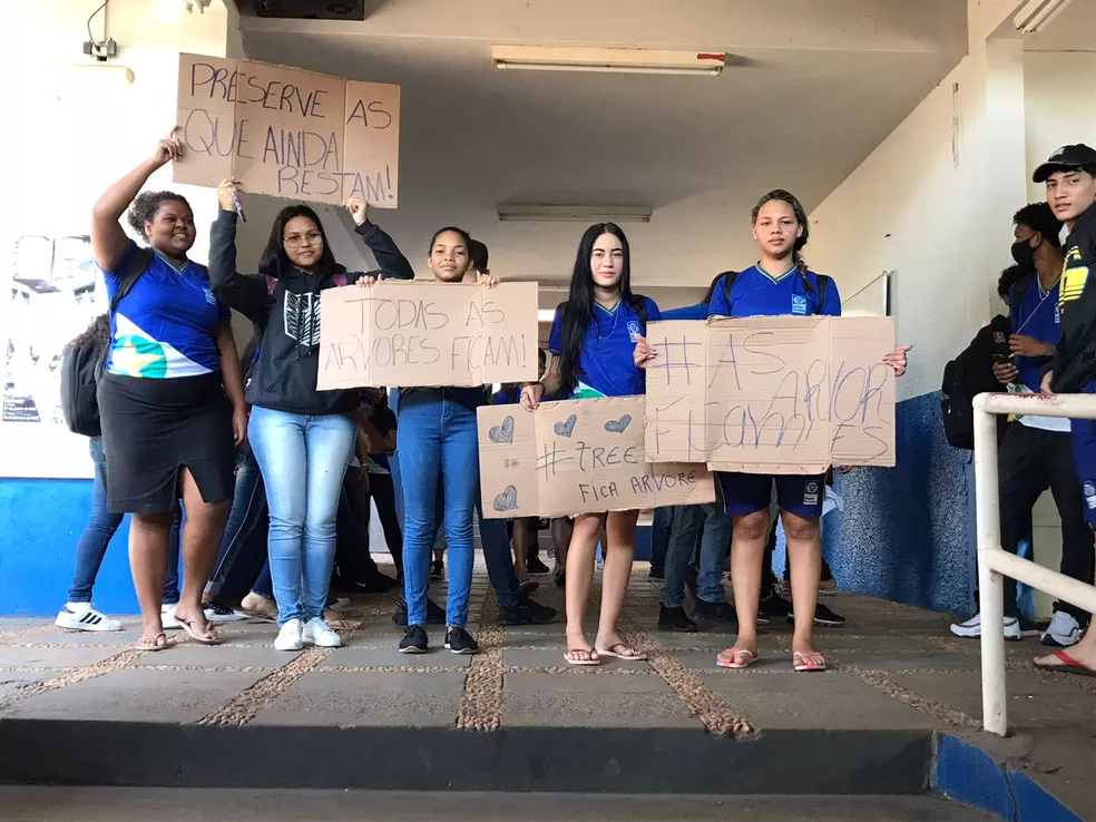 “Nós, alunos da escola, estamos mostrando a nossa indignação, porque eles querem tirar as árvores. Nós estamos muito felizes com a reforma. Porém, a gente não quer que eles tirem as árvores”, disse o estudante Cristyan Gabriel.