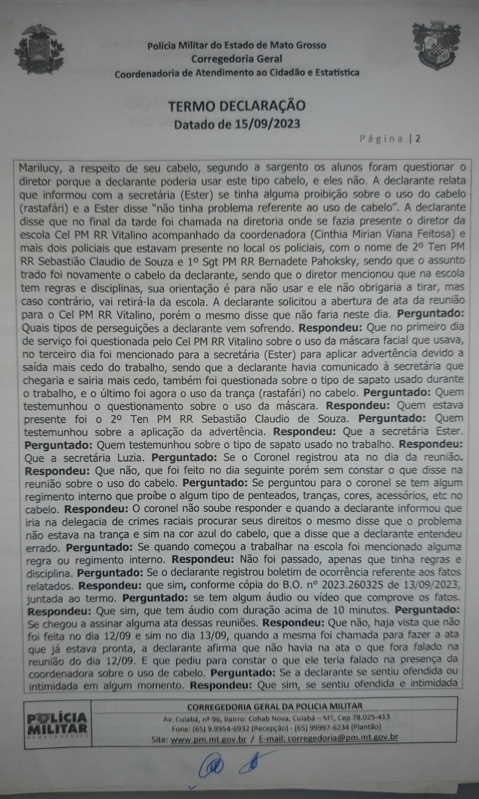 A reportagem entrou em contato com a Polícia Militar de Mato Grosso e informaram que o fato está apurado pela Seduc e a escola está acompanhando o caso.