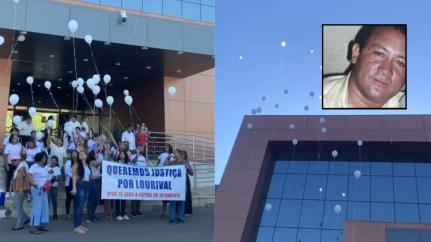 Familiares do frentista Lourival Serafim de Almeida, executado a tiros em 2011, realizaram um protesto em frente ao Fórum de Cuiabá nesta semana. Com roupas e balões brancos, eles pediam celeridade no julgamento dos acusados, que foi novamente adiado. A sessão de júri popular, marcada para esta quinta-feira (10), foi suspensa por tempo indeterminado após o advogado de um dos réus informar que passará por cirurgia.