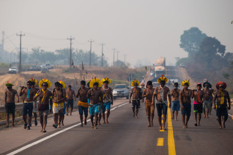 Povos indígenas bloqueiam a rodovia, em 2020, em protesto contra o Ferrogrão. Foto: Instituto Kabu