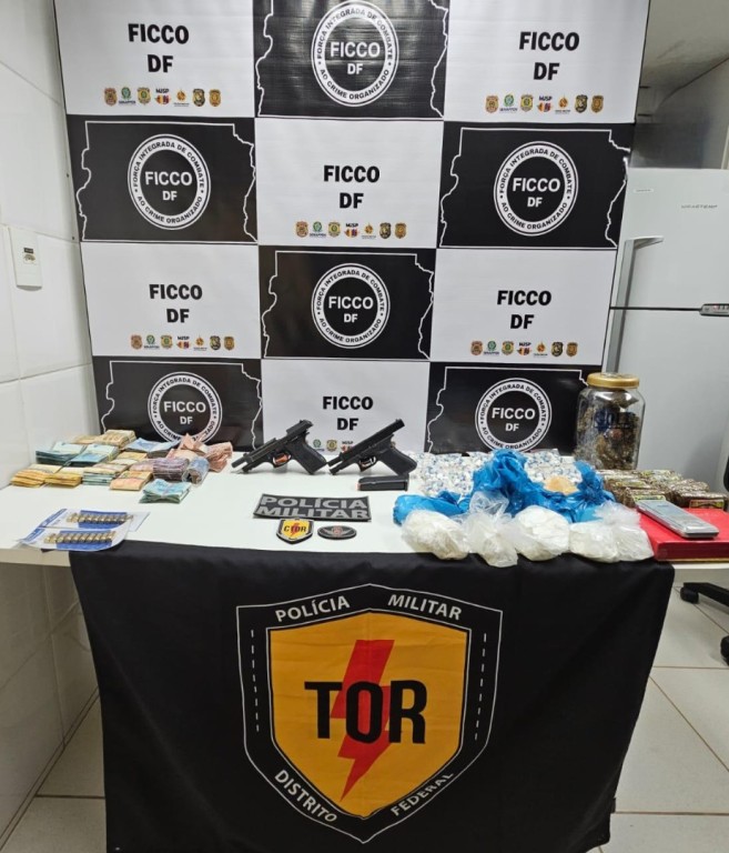 Brasília/DF. A Força Integrada de Combate ao Crime Organizado do Distrito Federal (FICCO/DF) prendeu nesta segunda-feira (7/10) uma mulher pelos crimes de tráfico de drogas e porte ilegal de armas de fogo. A prisão ocorreu durante abordagem a um veículo na DF-361, próximo à cidade do Gama/DF.