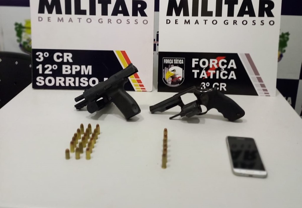 Com aproximação dos policiais, os condutores saíram em alta velocidade, dando início a uma perseguição. Dois foram abordados em seguida. Com eles, foram apreendidos uma pistola calibre 9 milímetros, um revólver calibre 38 e diversas munições.