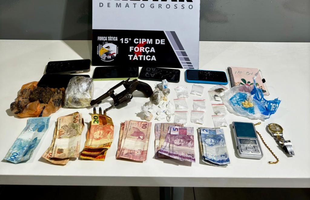 Policiais da Força Tática do 2° Batalhão Regional prenderam dois homens, de 18 e 22 anos, por tráfico ilícito de drogas, na noite desta segunda (18.11), em Várzea Grande. Os militares apreenderam 24 porções de pasta base, maconha, cocaína, e um revólver calibre .32 com três munições intactas.