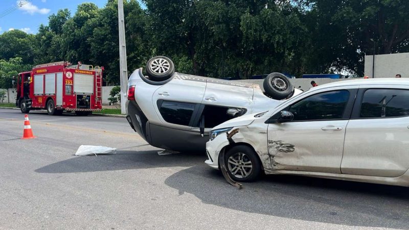 De acordo com informações de populares que presenciaram o ocorrido, os veículos colidiram e, com o impacto, o Fiat Pálio acabou capotando na via. Uma mulher ficou ferida em um dos braços e precisou de atendimento médico.