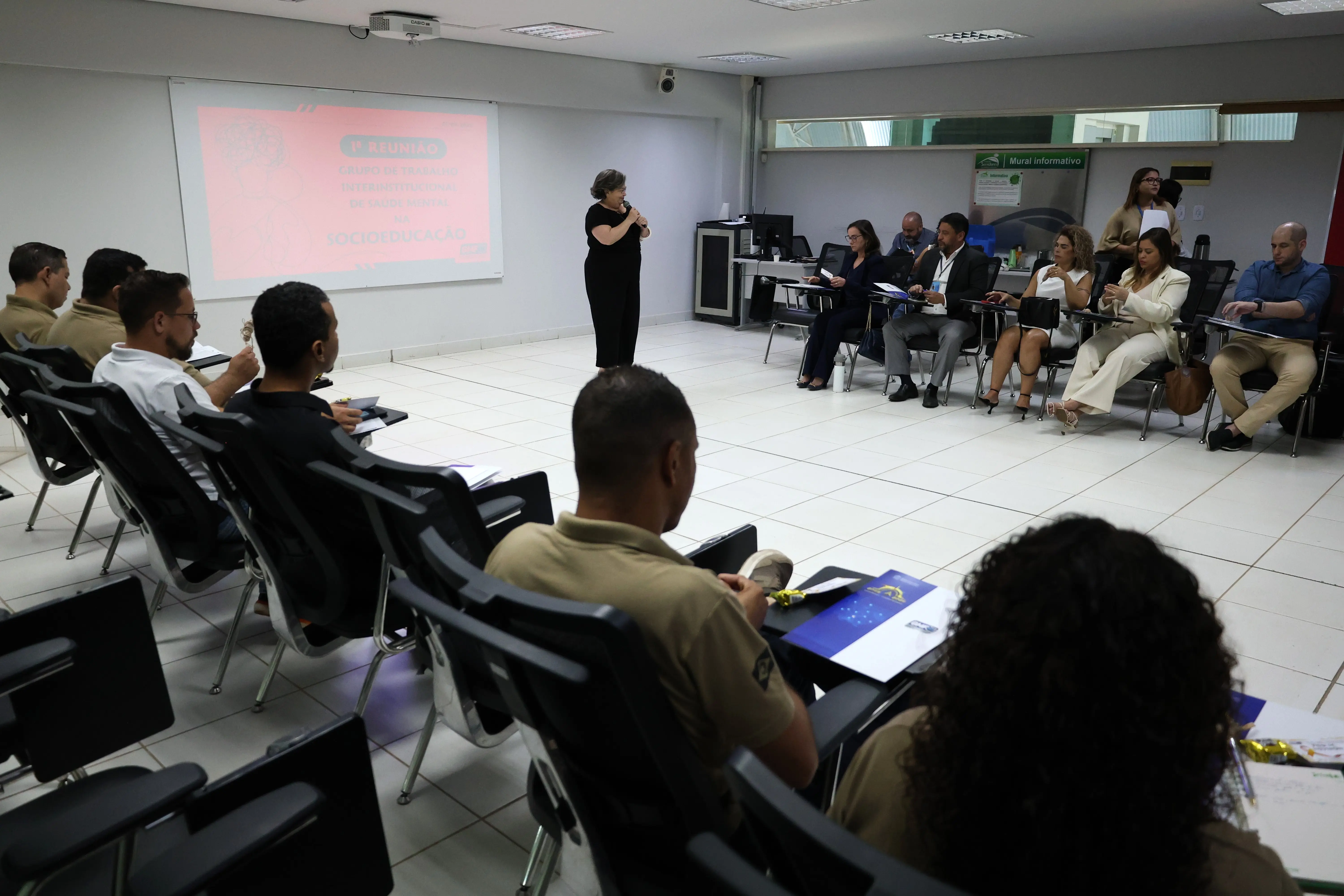 O Grupo de Trabalho Interinstitucional de Saúde Mental na Socioeducação realizou, nessa segunda-feira (1º de setembro), a sua primeira reunião, coordenada pela juíza Leilamar Rodrigues, coordenadora do eixo socioeducativo do Grupo de Monitoramento e Fiscalização do Sistema Carcerário e Socioeducativo do Tribunal de Justiça de Mato Grosso (GMF-TJMT).