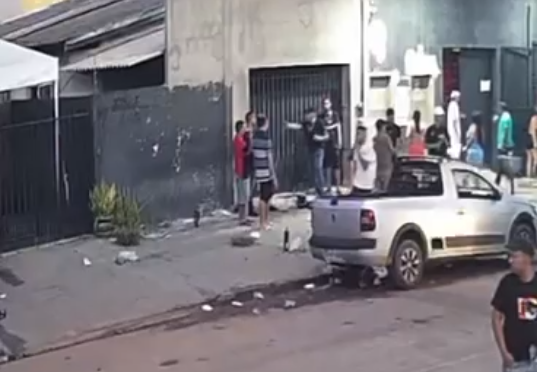 Imagens de câmeras de segurança flagraram o momento exato em que um jovem de 24 anos foi baleado à queima-roupa durante a madrugada deste domingo (11), em meio a uma confusão em uma distribuidora de bebidas no município de Sinop (500 km de Cuiabá). O vídeo, que circula entre investigadores, mostra a frieza da ação criminosa e o pânico que tomou conta do local.
