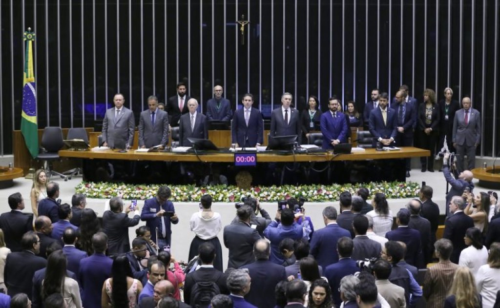 O presidente da Câmara dos Deputados, Hugo Motta (Republicanos-PB), afirmou que a democracia é um bem inegociável e que seguirá usando a Constituição como uma bússola na defesa do Brasil e dos brasileiros. Motta discursou em sessão solene em homenagem aos 40 anos da redemocratização do Brasil, no Plenário da Câmara.