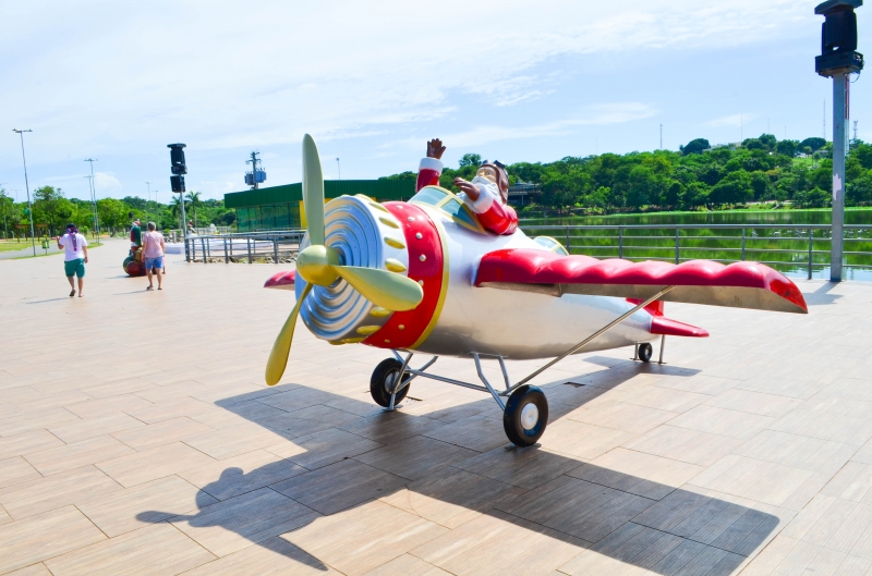 A Prefeitura de Cuiabá levou a magia do Natal também para o Parque das Águas. Desde a segunda-feira (18), o espaço frequentado diariamente por milhares de pessoas passou a contar com uma decoração montada especialmente para celebrar a data. Executada por meio da Secretaria Municipal de Serviços Urbanos, a ornamentação pode ser observada nas proximidades da Lagoa Paiaguás e conta com dezenas de imagens dos principais elementos natalinos, além de um grande “globo de neve” inflável, onde o público pode tirar fotos.