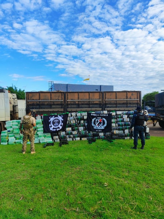 Guaíra/PR. Na madrugada desta quinta-feira (12/12), policias federais e policiais militares da Força Tática/PMMS, em uma operação conjunta, realizavam patrulhamento na cidade de Mundo Novo/MS, quando localizaram uma carreta bitrem parada próximo a um frigorífico abandonado da região.