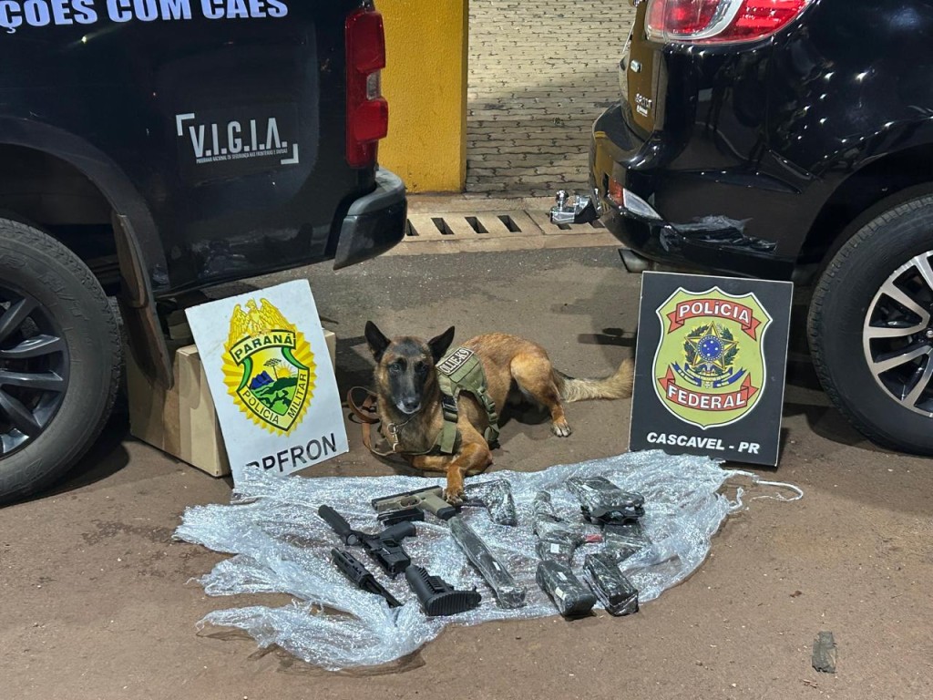 Cascavel/PR. Na madrugada desta quarta feira (5/2), ação integrada entre a Polícia Federal e a Polícia Militar do Paraná culminou na apreensão de dois fuzis e quatro pistolas.