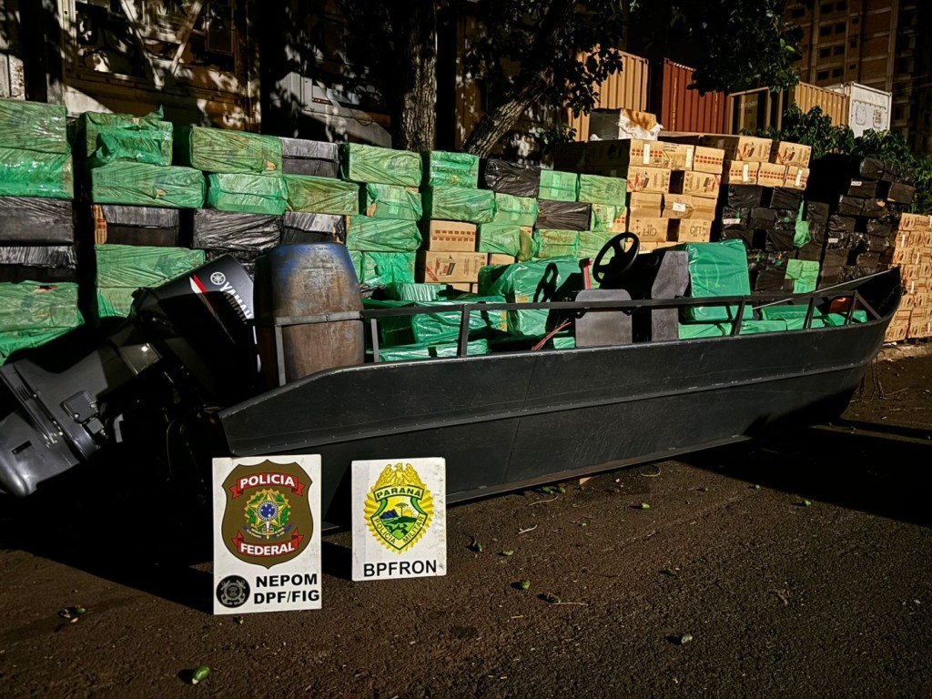 Foz do Iguaçu/PR. A Polícia Federal, em ação conjunta com o BPFron, prendeu, no último domingo (1/12), um homem em uma embarcação com dezenas de caixas de cigarros estrangeiros em Itaipulândia/PR, região oeste do estado do Paraná.