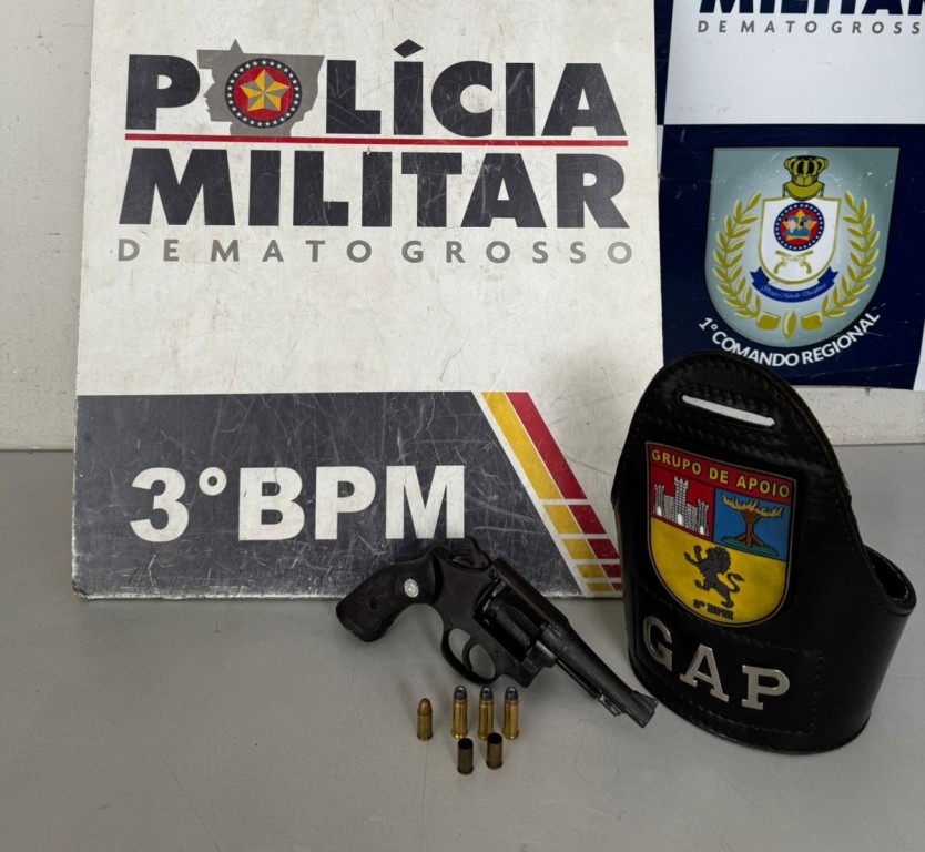 Policiais militares do 3º Batalhão de Cuiabá apreenderam um adolescente, de 17 anos, suspeito por tentativa de roubo, homicídio e porte ilegal de arma de fogo, no bairro Carumbé, na manhã desta sexta-feira (01.11). As equipes recolheram ainda um revólver e seis munições calibre .32, sendo quatro intactas.