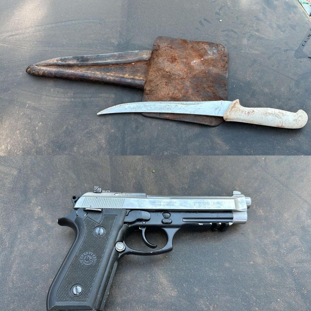 O homem foi identificado como Vanderley Evaristo da Silva, de 44 anos. Com ele estava uma pistola de calibre .9mm, uma faca e materiais para acampamento.
