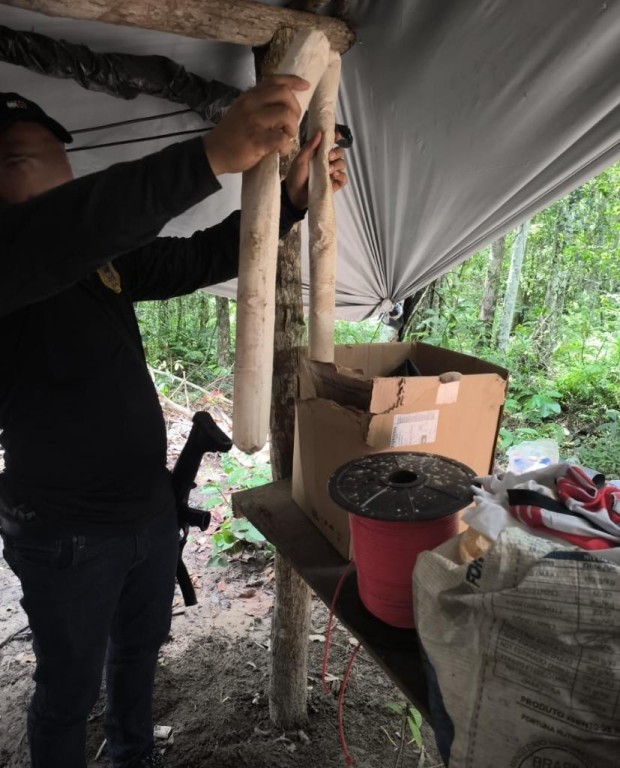 Um acampamento clandestino de garimpeiros foi desmantelado pela Polícia Civil em Vila Bela da Santíssima Trindade (MT). No local, foram encontradas nove unidades de banana de dinamite. A ação ocorreu nesta terça-feira (12), como parte do planejamento estratégico de enfrentamento às facções criminosas, por meio da operação Inter Partes, que integra o programa Tolerância Zero, do Governo do Estado.