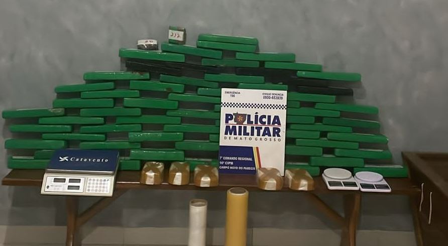 Equipes da 16ª Companhia Independente da Polícia Militar apreenderam, na madrugada desta quinta-feira (01.08), 64 quilos de entorpecentes em uma região conhecida como Alto das Palmeiras, no município de Campo Novo do Parecis (a 402 km de Cuiabá).