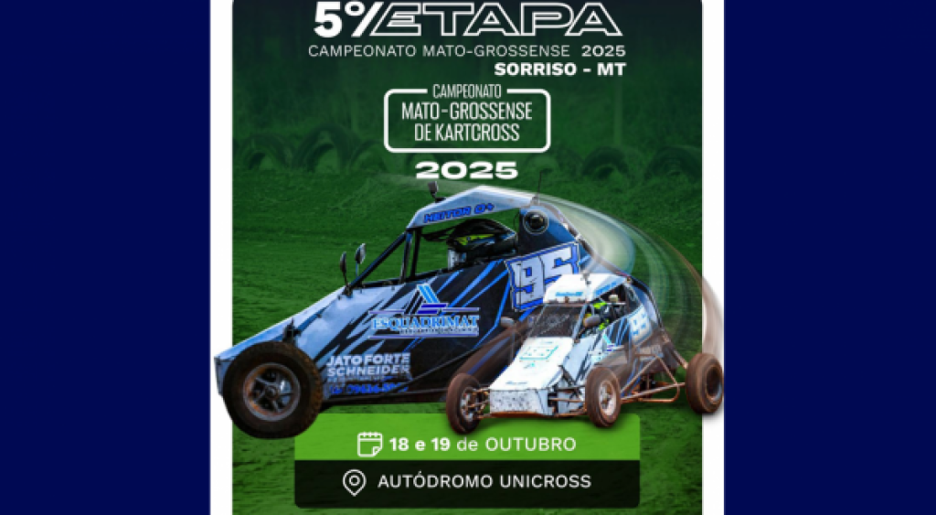 Sorriso se prepara para um fim de semana de velocidade, emoção e muita poeira na pista. Nos dias 18 e 19 de outubro, o Autódromo Unicross (União Kartcross) recebe a 5ª etapa do Campeonato Estadual de Kart Cross, reunindo pilotos de diversas regiões do Mato Grosso e até de outros estados.