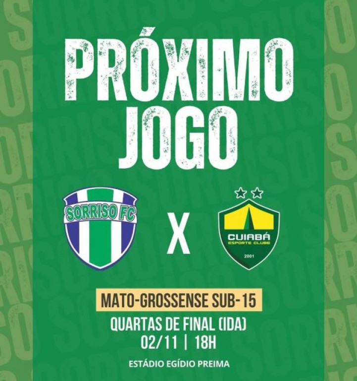 Neste domingo (2), às 18h, o Estádio Egídio José Preima recebe o jogo de ida das quartas de final do Campeonato Mato-grossense Sub-15. O confronto será entre Sorriso Futebol Clube e Cuiabá.