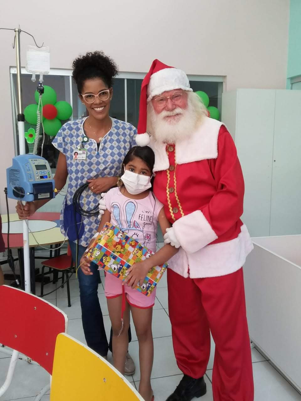 Papai Noel: Alegria, paciência e conversa. Criança tem história, idoso também. Todo mundo precisa ser ouvido.
