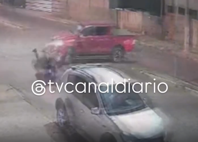 No vídeo, é possível acompanhar o momento em que a vítima trafega pela via quando é atingida pela caminhonete que realizava uma conversão. Com o impacto da batida, o homem é arremessado para fora da motocicleta, caindo violentamente no asfalto.